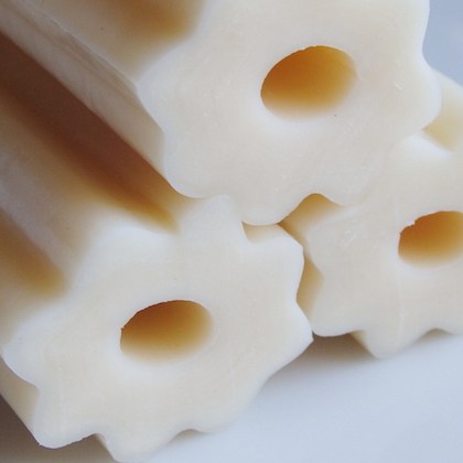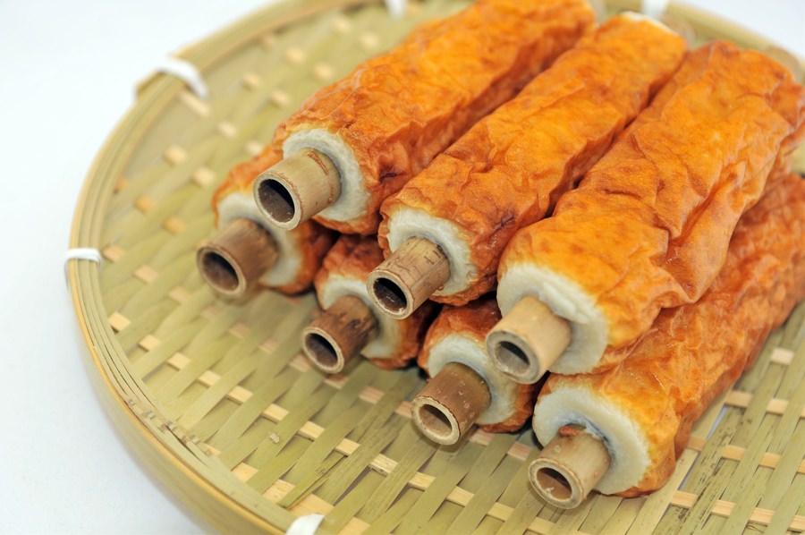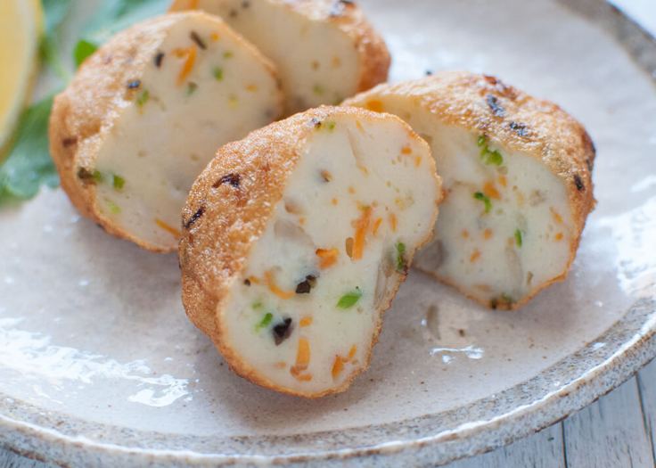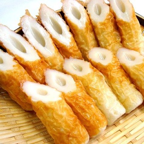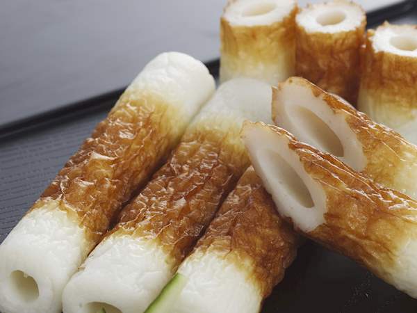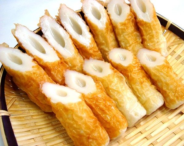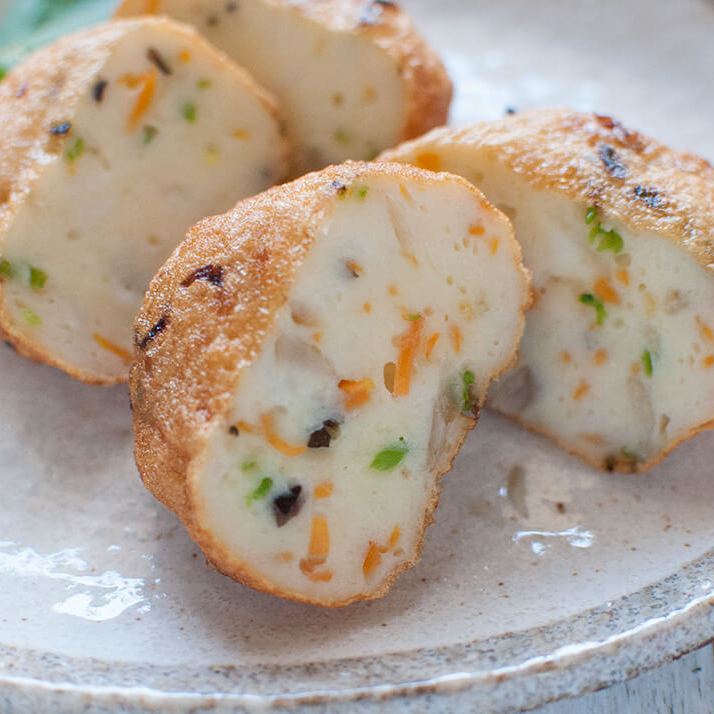 This is another kamaboko made using white fish surimi, but what makes it unique is its meringue-like texture. This comes from the addition of yamaimo or nagaimo (Japanese mountain yam). This yam acts as a binding agent as it gets slimy on grating. This makes it fluffy, soft, and spongy on eating. Used in various dishes like oden and datemaki (Japanese rolled omelet, scroll down for more on datemaki).