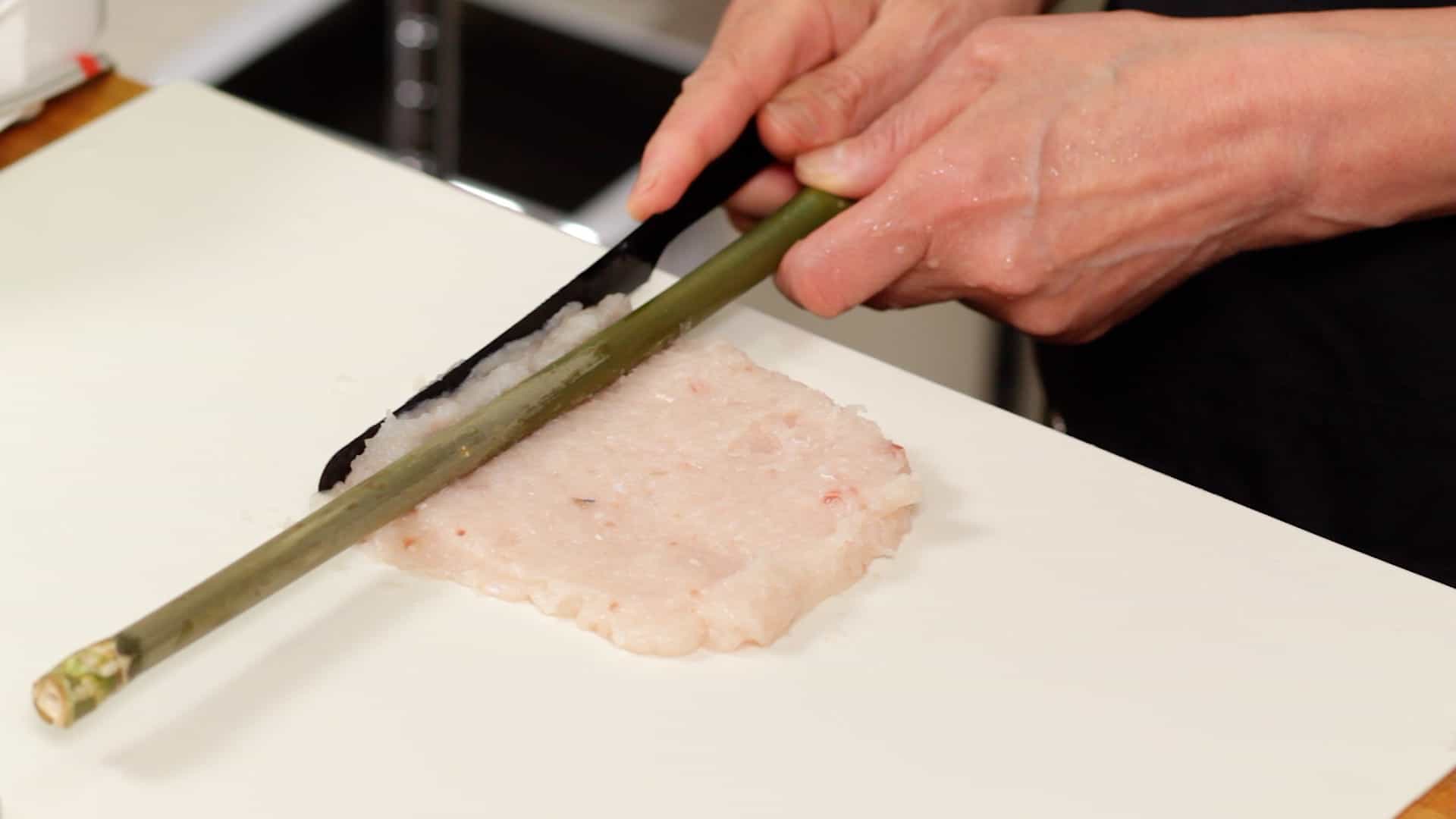 Industrially when it’s made it uses a different form of proteins to bind the meat together such as egg, soy protein, or TGM (Transglutaminase, which is an enzyme also known as meat glue). But egg whites also perfectly work for binding if you are making it at home. Whitefish is usually preferred for making kamaboko as most of the white fishes are less intense in flavor. Also, kamaboko is usually white, and sometimes in the case of red kamaboko color is added hence white fishes are again preferable for plain color.