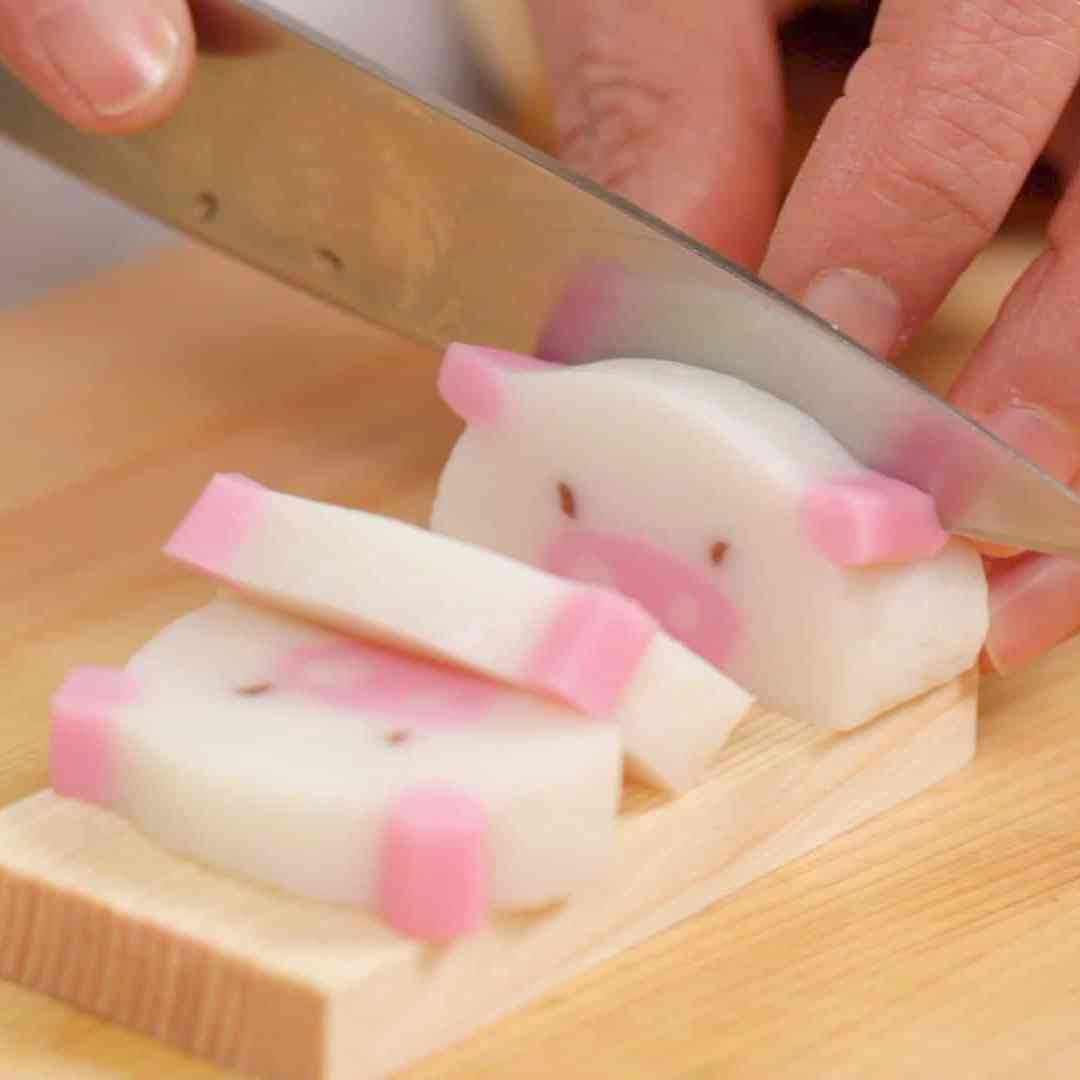 I am so excited to talk about this ingredient. The first time I came across kamaboko was when I had my first bowl of ramen. There was this cute looking pink and white swirl topping in it and it looked very familiar, that is when I realized I had seen it as an emoji. When I asked about it they said that it was made with fish mince and there are various types of it. Although I am not a big fan of fish cakes this ingredient was perfect for creating artworks (like the one in the picture above where I made a rabbit using the fish cake).