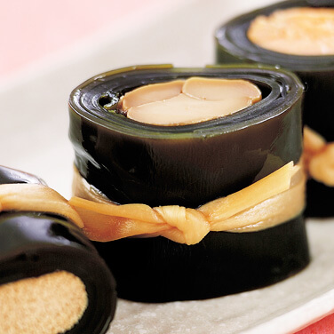 As the name suggests kombu maki kamaboko is fish cakes with layers of kelp inside to create patterns like swirls and other shapes in the fish cake. When cut through these kamaboko reveals various patterns making this type a bit more expensive than the regular kamaboko.